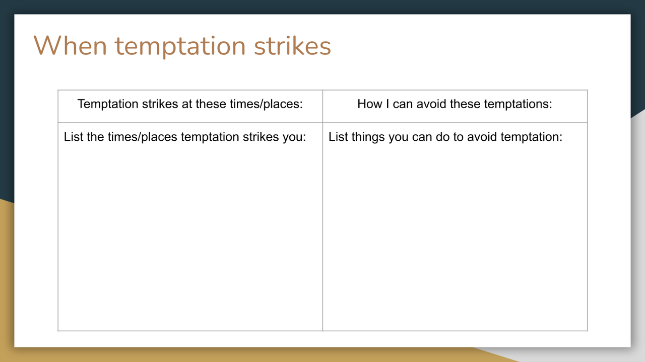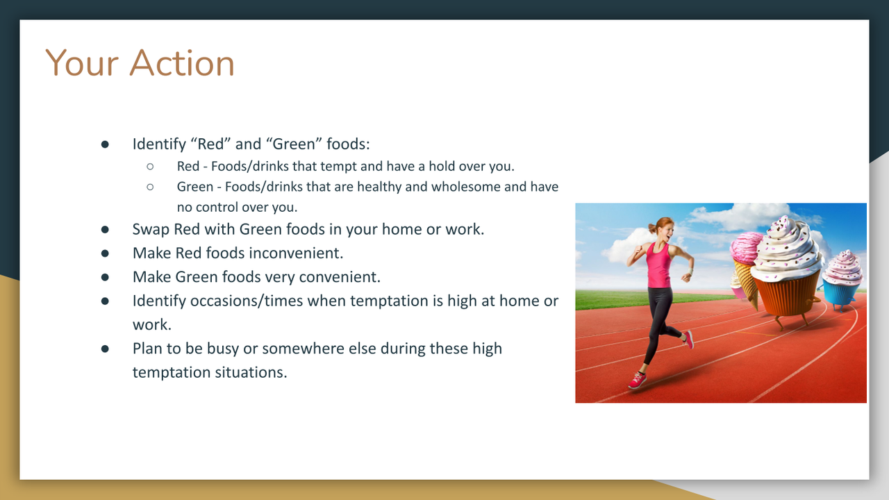 - How can you adapt your approach in different situations so you make healthier chocies more of the time?