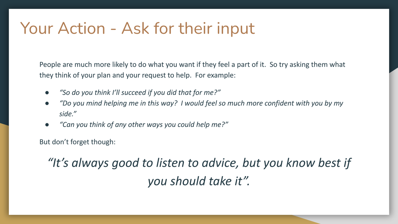 - Who are the people you want to have a conversation with about how they might better support you?