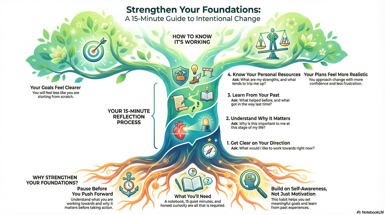 Instead of jumping straight into action, you take a few minutes to understand what you are working towards, why it matters and what you already know about yourself. This makes everything that comes next feel steadier and more intentional.
